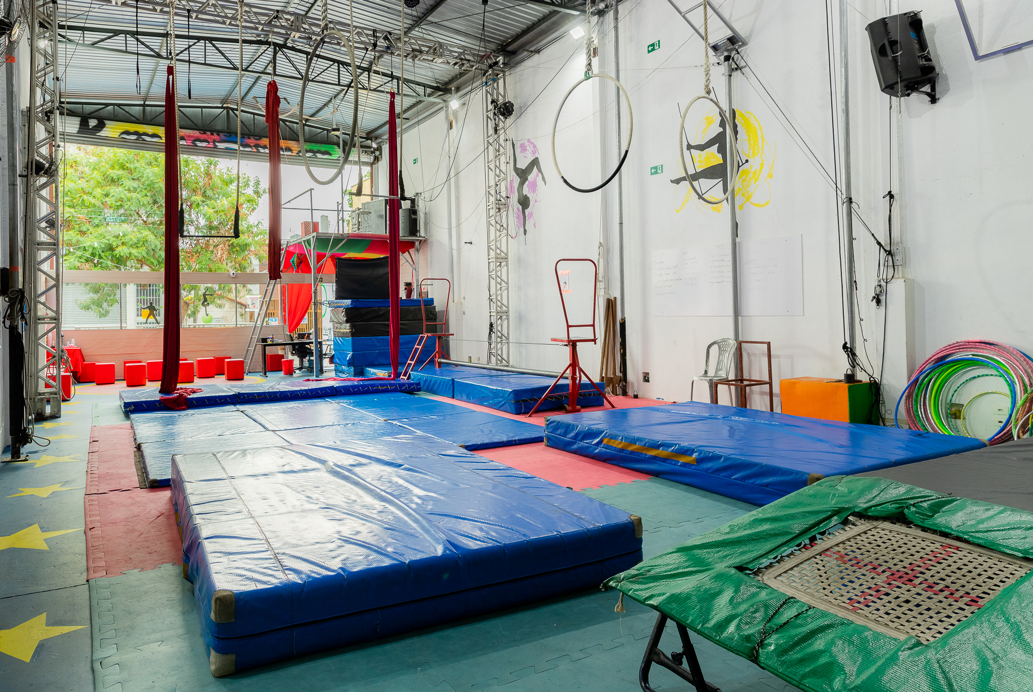 Dia 1- Circuito de circo + acrobacia no tecido, trapézio e lira